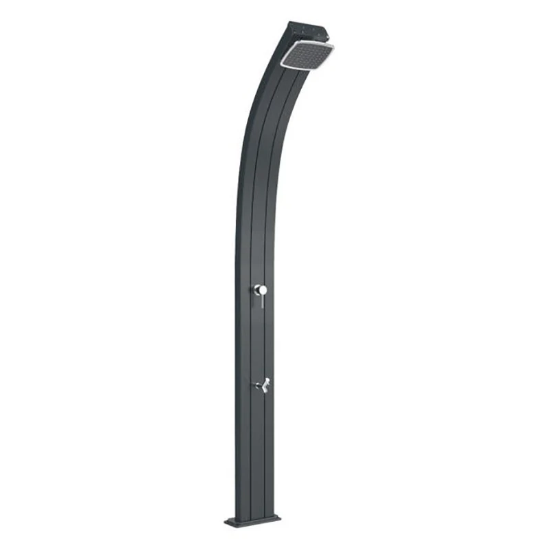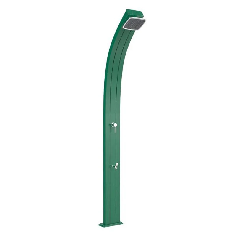 La douche solaire Spring A 120 en aluminium anticorrosion est idĂ©ale si vous souhaitez la placer dans un jardin ou sur une terrasse. FabriquĂ©e en Italie, elle est Ă©quipĂ©e d’un pommeau de douche, d’un mitigeur et d’un rince-pieds. L’option rince-pieds est très apprĂ©ciĂ©e car elle permet de pouvoir se rincer les pieds sans mouiller l’intĂ©gralitĂ© du corps. Tous ces accessoires sont en laiton chromĂ© et ABS chromĂ© pour une plus grande rĂ©sistance.